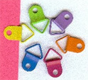 Triangular and Round Loops Loop Assortments contains a mix of colored hangers, with triangle and round shaped moveable loops on the end. They can actually be slid onto paper, and held in place with a mini brad/fastener. A fun way to hang, latch or tie other items onto. Let your creativity go crazy! Pkg of 25. MFRP 2.99 Bargainpack 2.59 |